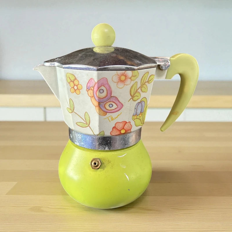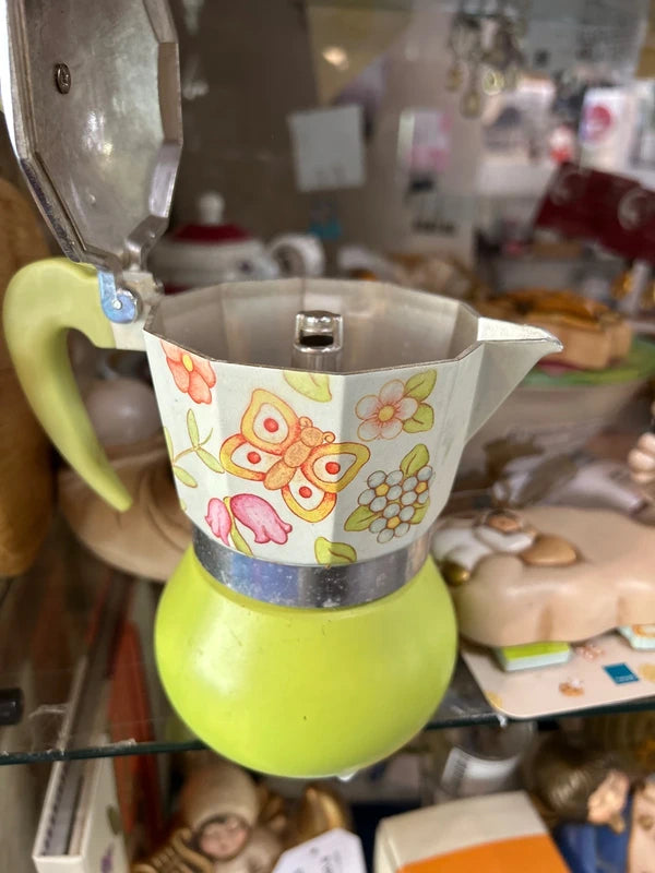 La caffettiera mostrata nell'immagine è un modello iconico della linea "Country" del marchio italiano Thun. È una moka tradizionale, solitamente disponibile nella capacità di 3-4 tazze.