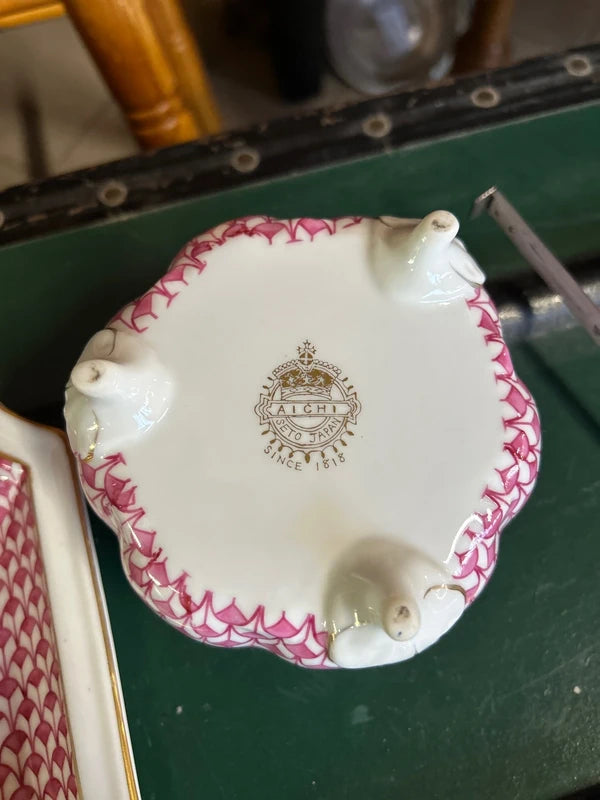 Coppetta con coperchio e piedini Aichi Seto Japan con piatto