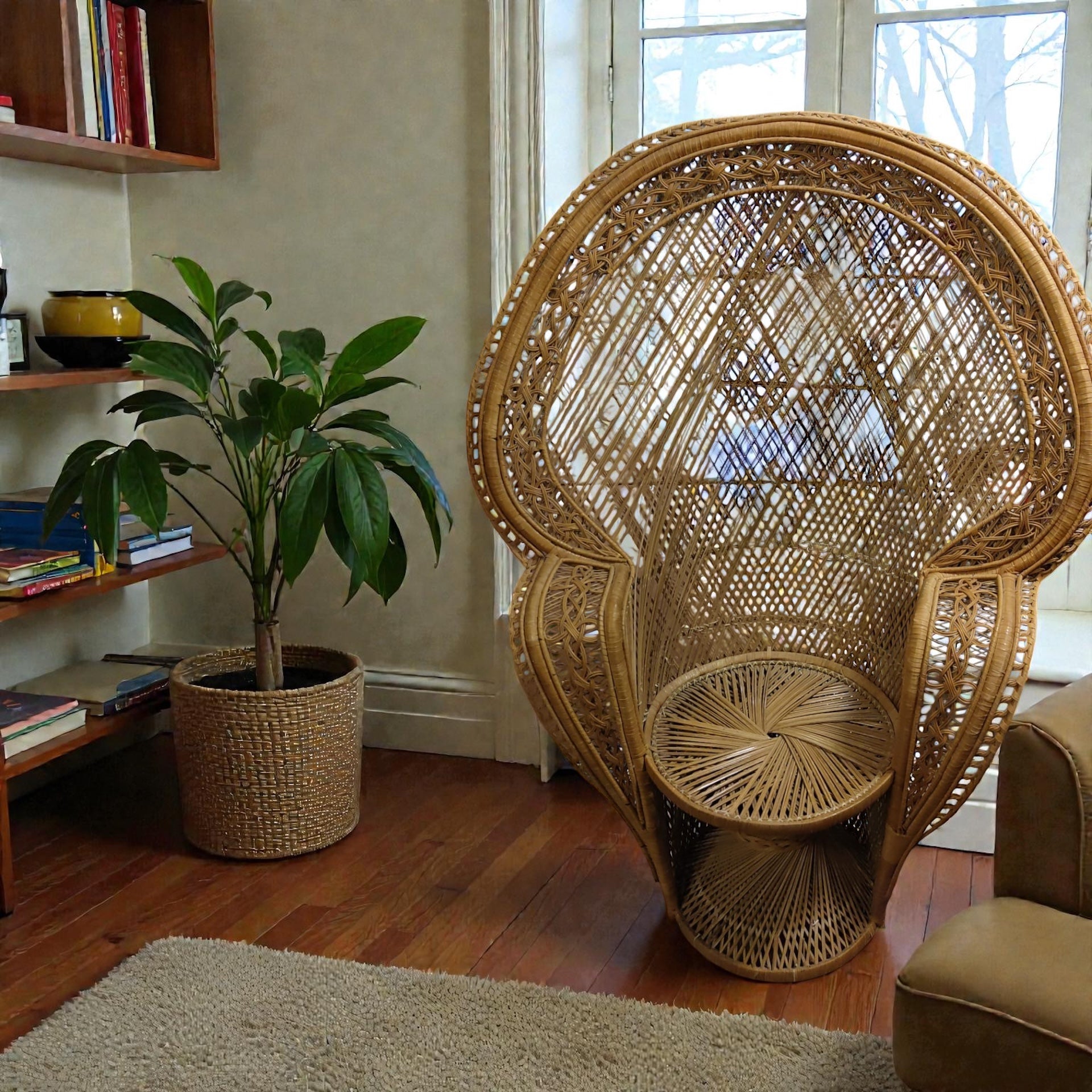 🪶 Sedia Pavone Vintage in Rattan/Vimini